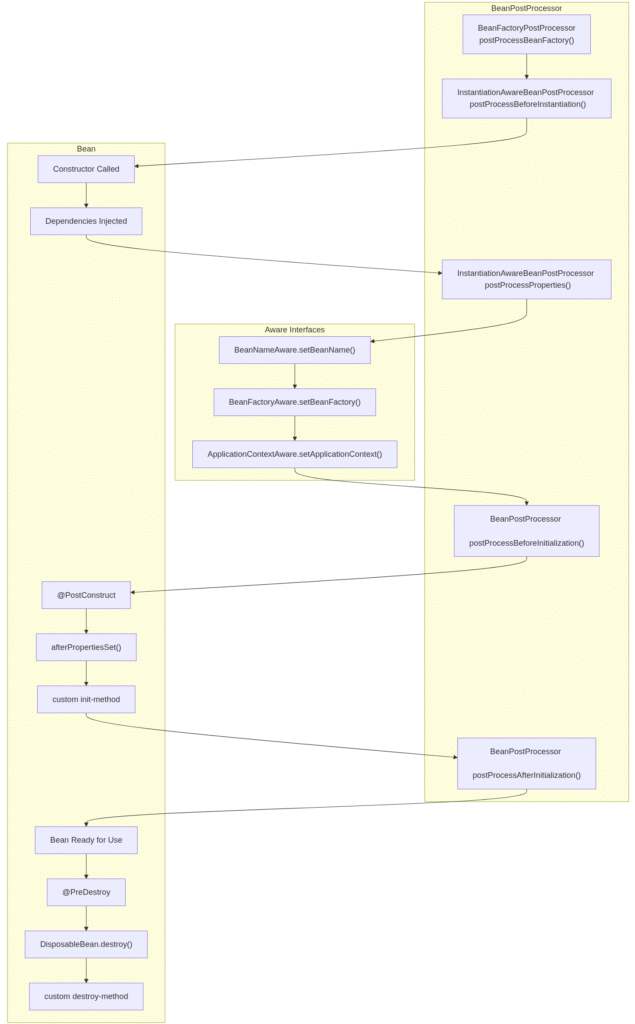 • 6. Ready-to-use → The bean is fully initialized and available for business logic.